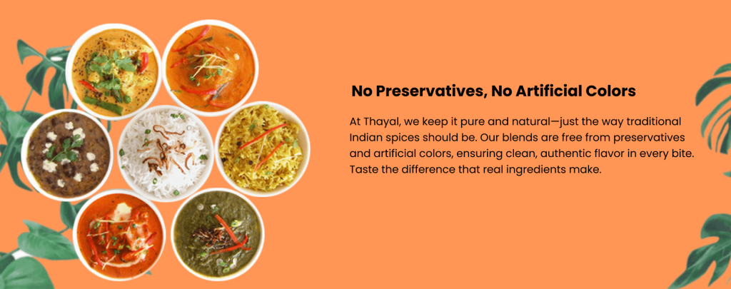 At Thayal , we believe that every dish tells a story, and the right spices can transform a simple meal into a delightful experience.Our masala’s are made from the finest, hand-selected ingredients, ensuring that every blend is bursting with freshness and flavor.