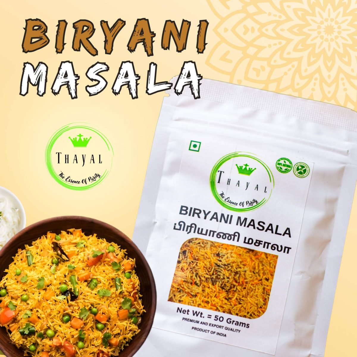 Thayal Biryani Masala is a blend of premium spices with an authentic and aromatic flavor. Perfect for creating rich and flavorful biryanis, it enhances rice and meat dishes with traditional taste.