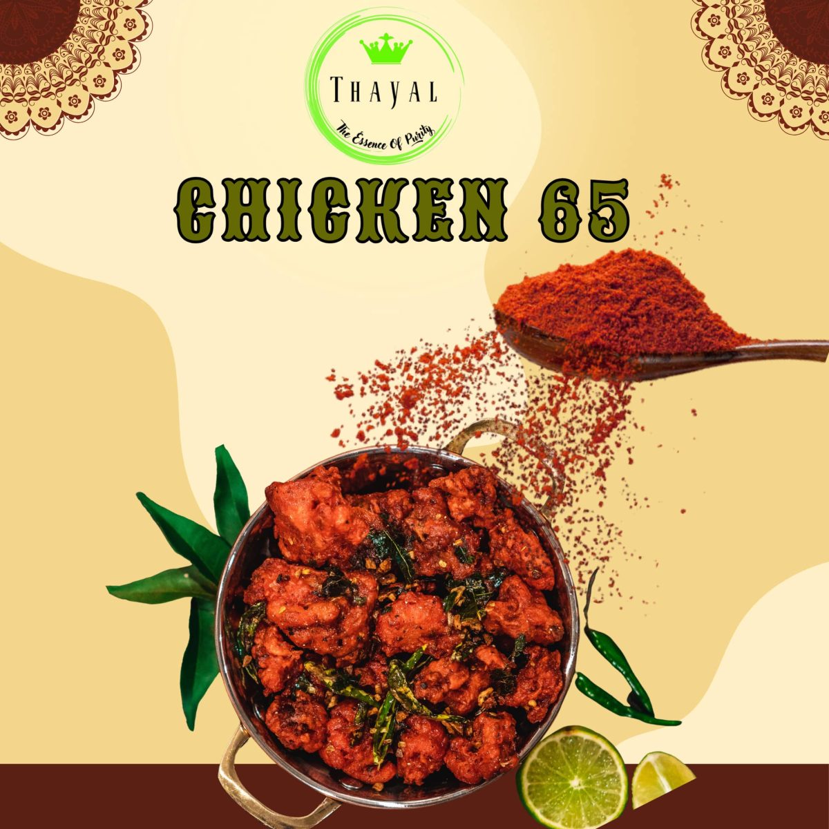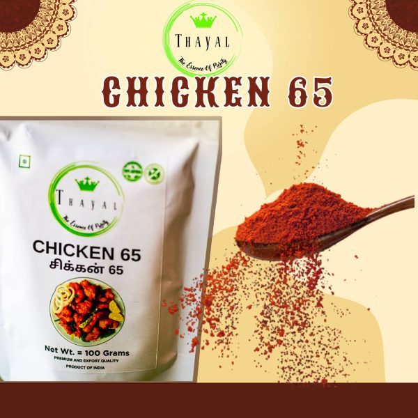 Thayal Chicken 65 Masala is a fiery, flavorful spice mix designed to create the perfect crispy, tangy Chicken 65. Crafted from premium spices, it delivers an authentic taste that’s sure to elevate your dish.
