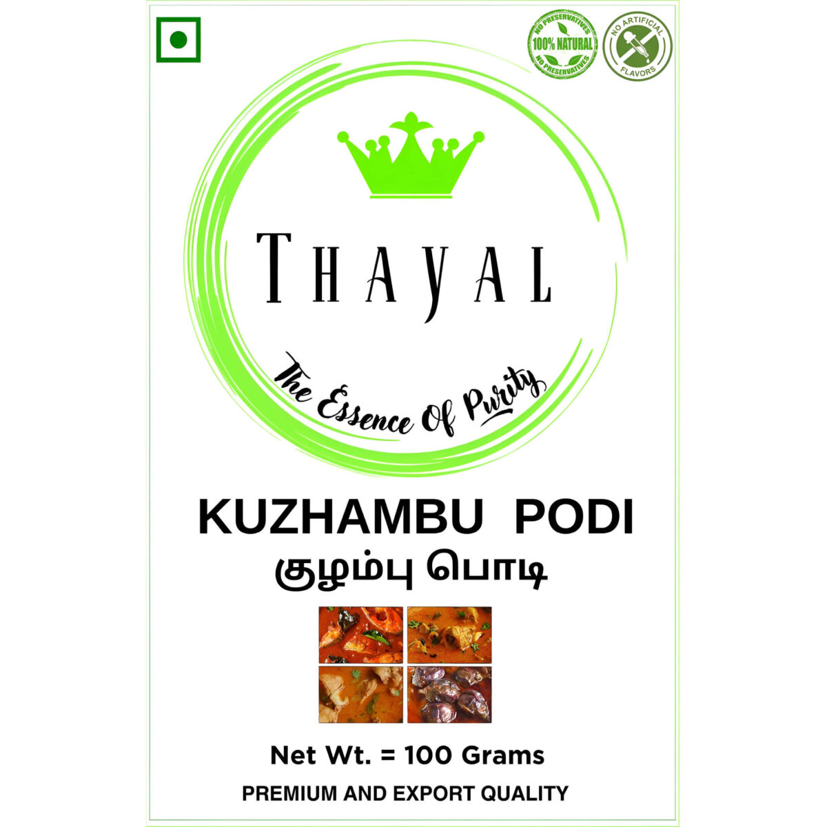 Thayal Kuzhambu Podi is a bold, traditional spice blend crafted for rich and flavorful South Indian tamarind gravies. Perfect for everyday dishes like puli kulambu, kara kulambu, and more, it brings authentic homemade taste with every spoon.