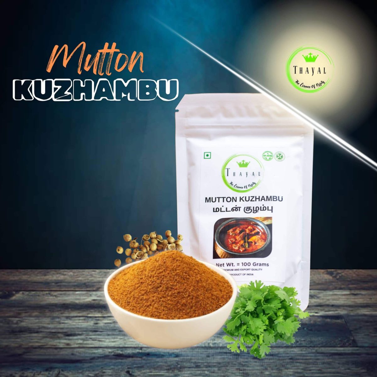 Thayal Mutton Kulambu Powder is a bold and flavorful spice mix crafted specially for rich, aromatic mutton gravies. It brings out deep, traditional taste in every bite, perfect for slow-cooked kulambu recipes.