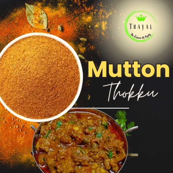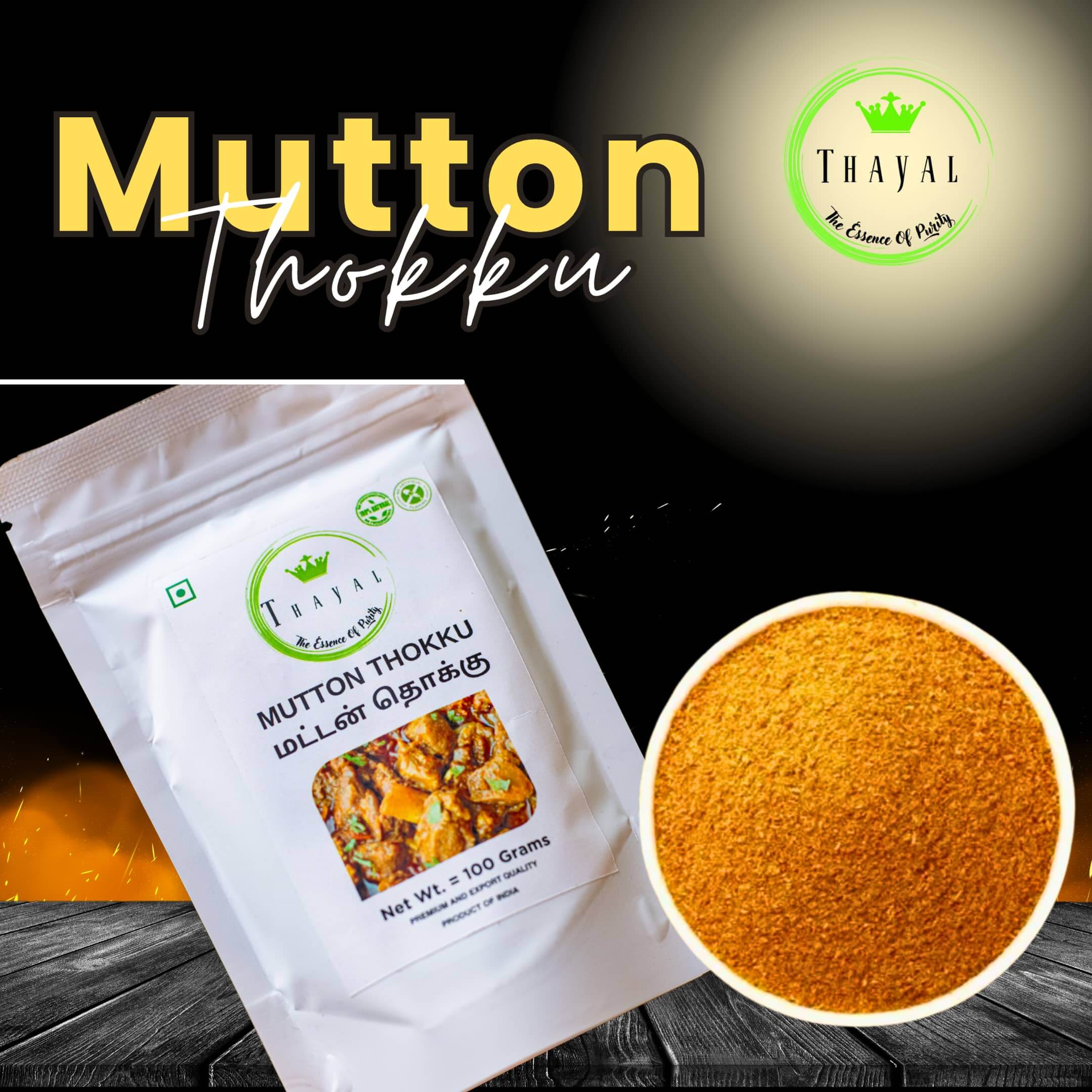 Thayal Mutton Thokku Masala is a thick, bold blend crafted specially for semi-dry and dry-style mutton dishes. It brings out deep, layered flavors with the perfect balance of spice and richness, ideal for slow-cooked thokku recipes.