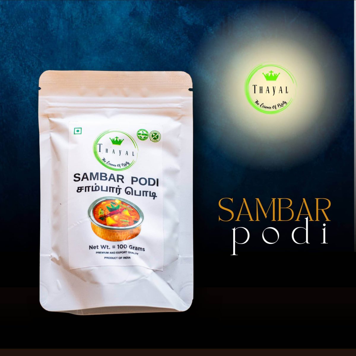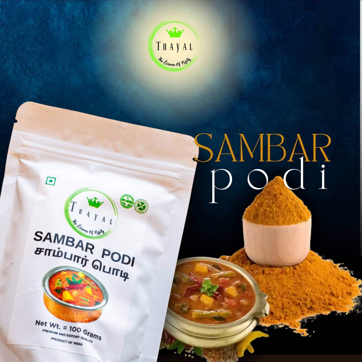 Thayal Sambar Powder is a traditional blend of roasted lentils and carefully selected spices, made to bring rich and authentic South Indian flavor to your sambar. It offers the perfect balance of taste and aroma for daily meals.